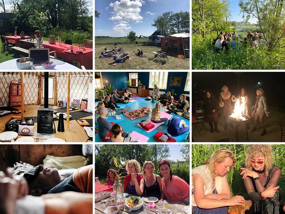 Plekken zoals festivals met een spiritueel tintje, vaak dicht bij de natuur. Maar ook op campings met bijzondere accommodaties zoals een yurt, pipowagen of safaritent. Altijd gecombineerd met een vuurplek, waar mooie gesprekken plaatsvinden, vaak samen met instrumenten, zoals gitaar of djembe. Natuurijk is de dromerige kas op het water, waar 'Centrum de Vrijheid' gevestigd is favoriet.